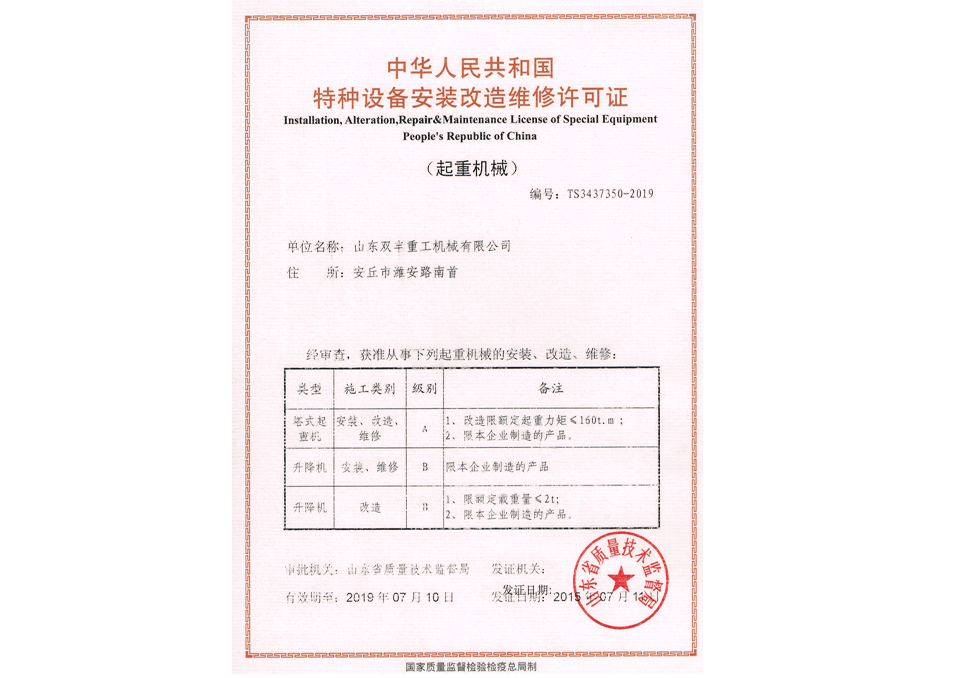 特種設備安裝改造維修許可證
