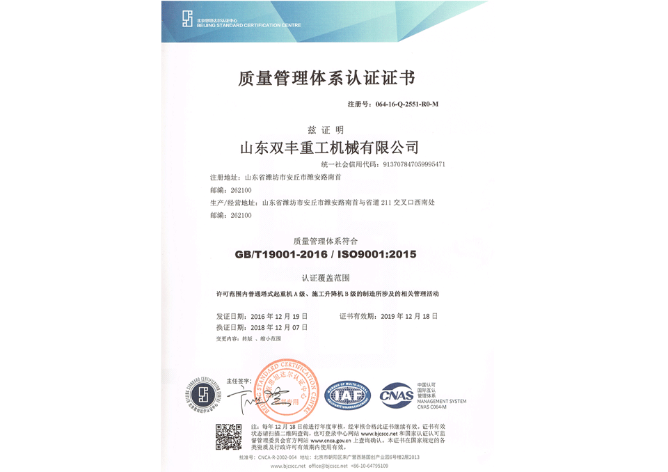 質量管理體系認證證書