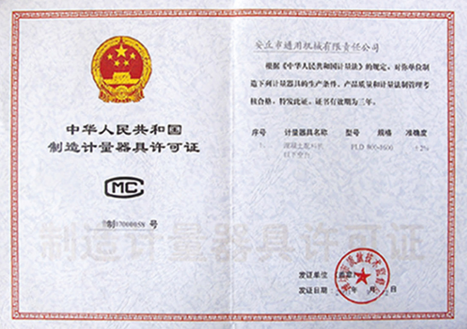 制造計量器許可證