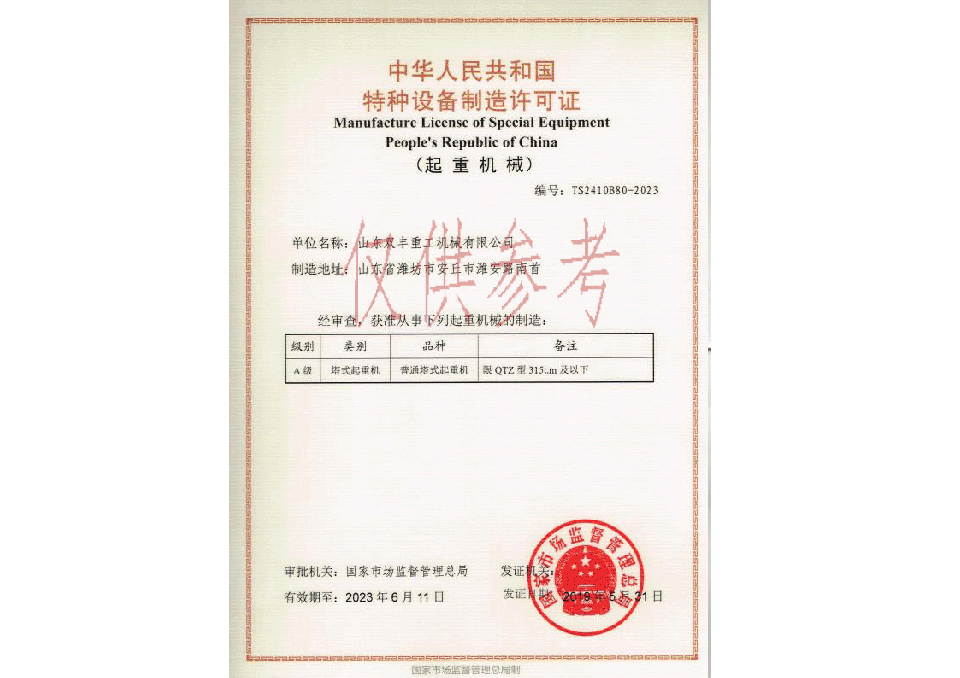 特種設備制造許可證